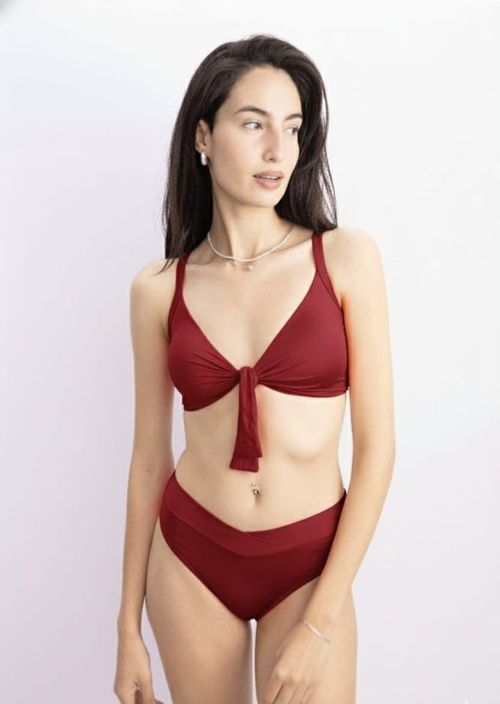 BIQUÍNI TOP CAMISETA NÓ FRENTE VINHO