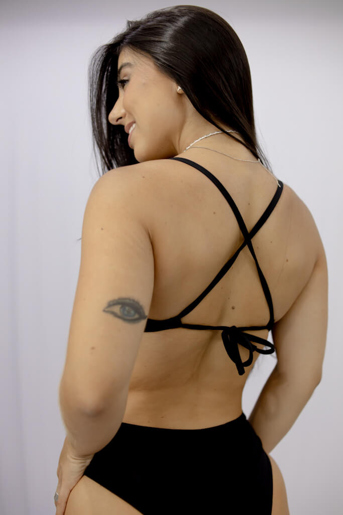 BIQUINI TOP FIXO TRANÇADO COSTAS PRETO