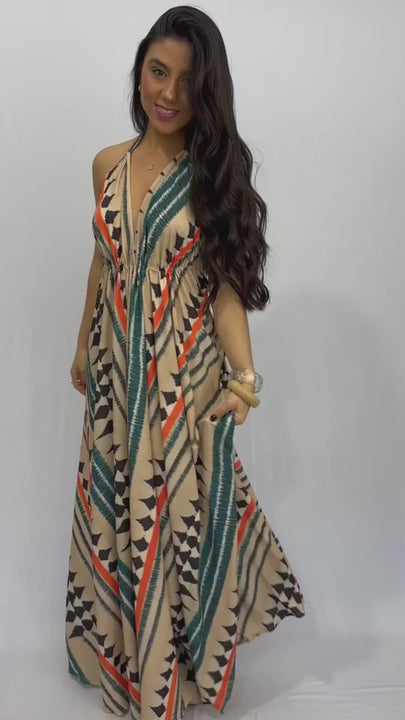 Transforme seus momentos de sol em desfiles de elegância descontraída com este Vestido Longo.